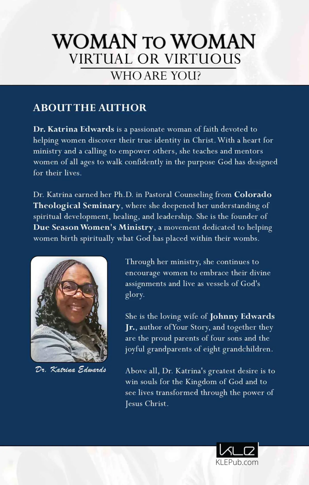 A devoted wife, mother, and faith leader shares helpful tips and life skills to help women navigate the challenges of being authentic in the virtual world we live in. Everything around us, all the media platforms and outlets, are all fighting for the attention of women and their interest to live in a virtual reality and deny their virtuous self that calls out to them. Although traditions might be old, and good manners feel antiquated, Dr. Katrina Edwards reminds women why now is a good time to reflect and get back to basics.